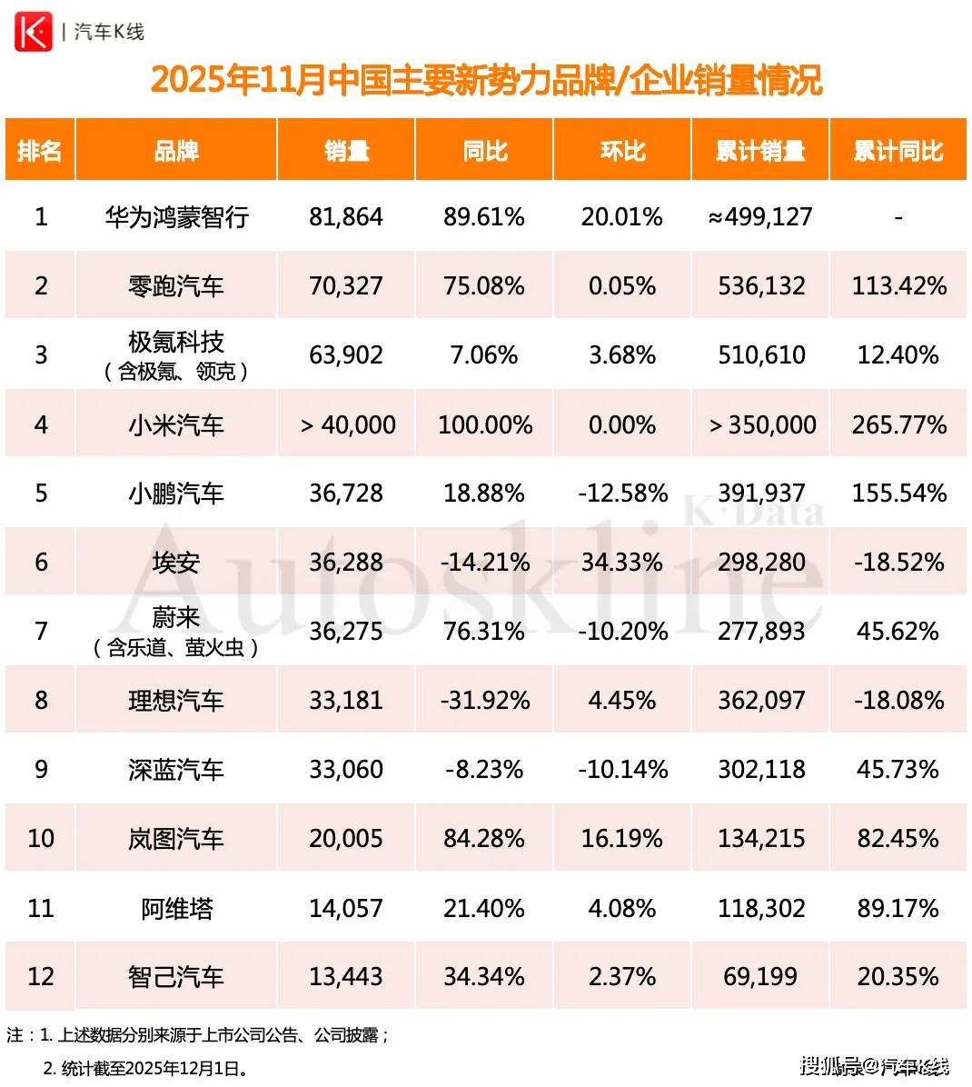 11月,华为鸿蒙智行以8.19万辆的月交付量重新成为新势力No.1。依托华为,鸿蒙智行已经构建起竞争对手难以复制的生态壁垒。